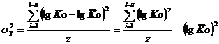 дисперсия (рассеивание) точек относительно среднеарифметического значения lgKo: