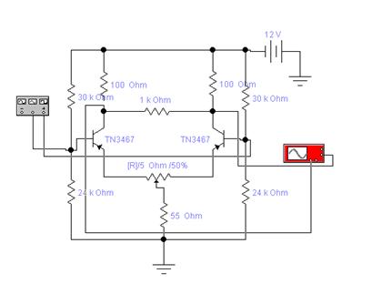 - Схема дифференциального каскада УПТ в режиме моделирования