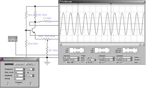 - Результат моделирования работы усилительного каскада