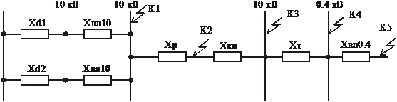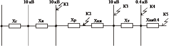 Составляем схему замещения для расчета токов короткого замыкания