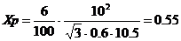 относительное сопротивление реактора; Xр=6% по заданию;