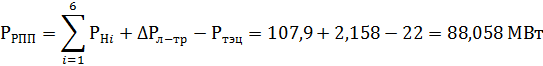 мощность, потребляемую на подстанциях потребителей после компенсации: