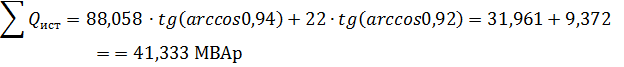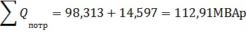 расчеты потребляемой реактивной мощности для остальных потребителей и заносим