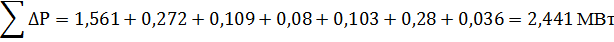 мощности в линиях и трансформаторах принимаем в размере от 2% от суммарной
