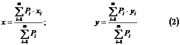 Координаты центра тяжести х и у определяем по формулам: