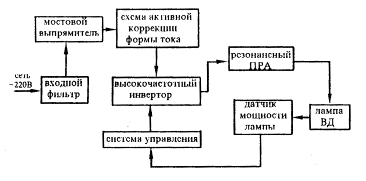 при этом лампа подключается к источнику постоянного тока и ПРА сдержит