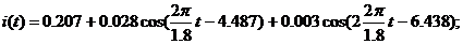 розраховані в п.3.1 АЧХ і ФЧХ функції передачі ланцюга. Запис струму