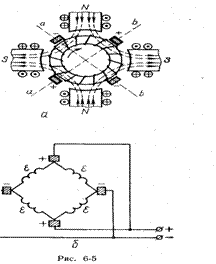 индуцироваться ЭДС (Рис.6-4, а). Оказывается, что в витках одной половины