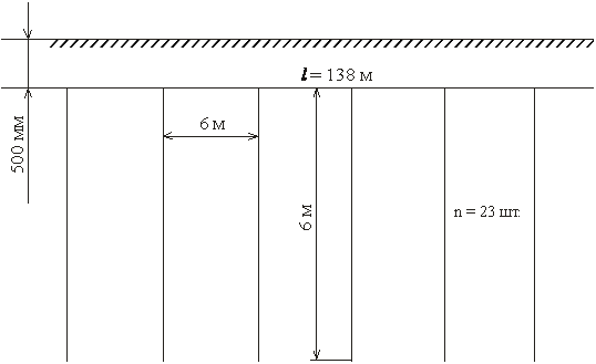 Приймаємо 23 електроди, тоді l = 6 ∙ 23 = 138 м та 23 штуки вертикальних електродів Ø50 або L 50х50.
