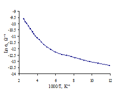 определялись по наклону прямолинейных участков в построенных зависимостях ln σ = f (1000/T).