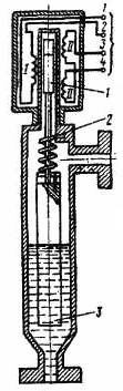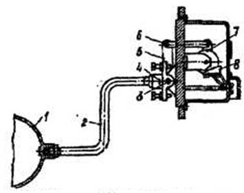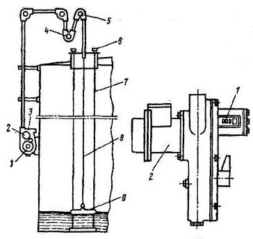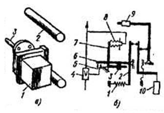 досягненні заданого рівня перекидають коромисло 7, що призводить до
