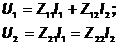Сравнив эти выражения с уравнениями при U2=0, найдем