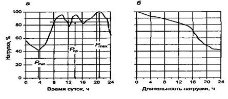 Рисунок1. Суточные хронологический график (а) и график продолжительности (б) нагрузки