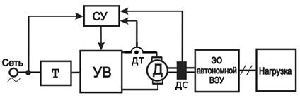 Ротор СГ подключен к входу неуправляемого выпрямителя (НВ) через