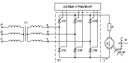 помощью управляемого выпрямителя (УВ). Контроль скорости вращения ДПТ