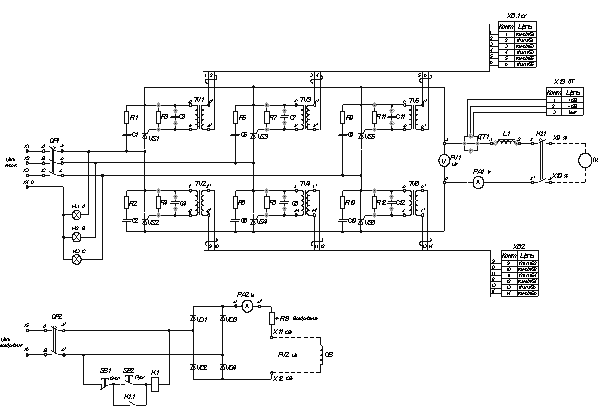 трехфазную сеть 220/380 В через автоматический выключатель QF1.