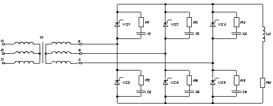 реактором L1. Также к выходу неуправляемого выпрямителя последовательно