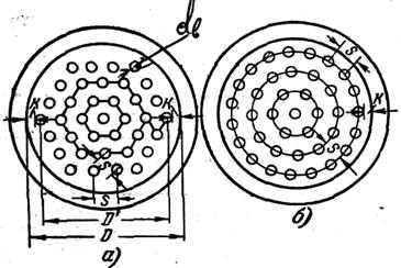 Рис. 1.Размещение трубок в трубной решетке трубчатого