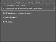 После выбора первого раздела меню “Теория и выполнение работы”,