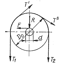 обертанні блоку доводиться долати тертя на його осі. Тиск R блоку на