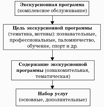 услуг, входящих в состав программы, является продуктом экскурсионной фирмы (или экскурсионного отдела туристской фирмы). Структура