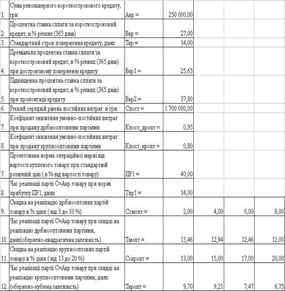 Таблиця Д.2 - Вихідні дані
