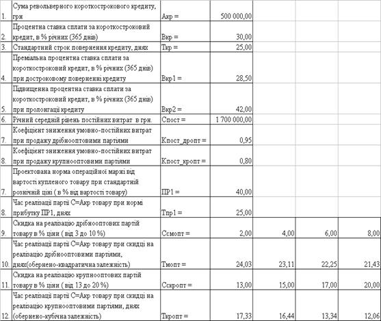 Таблиця Д.3 - Вихідні дані