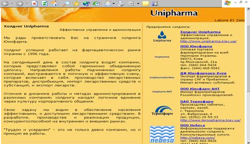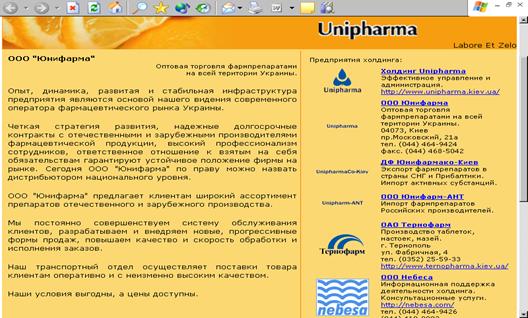 рекламне формулювання бізнесу ТОВ «Юніфарма» на Інтернетсайті