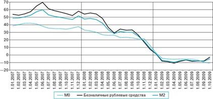 основных денежных агрегатов (месяц к предыдущему месяцу, %)[34]