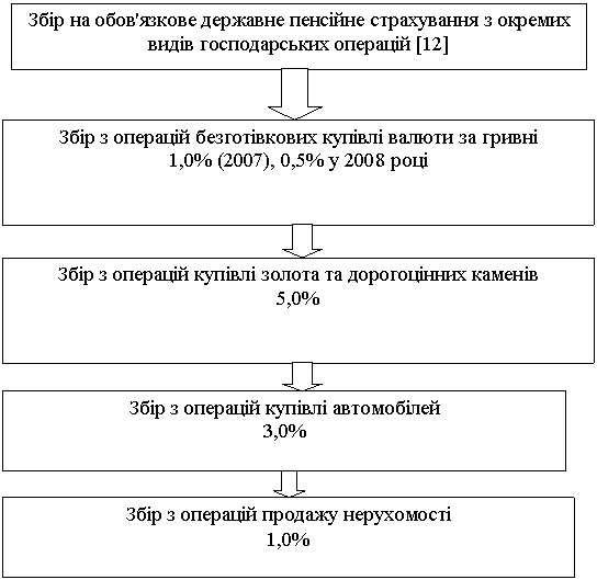 Структура додаткових зборів з окремих видів комерційних операцій в Пенсійний