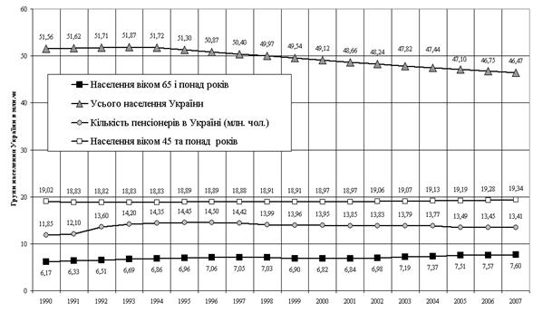 груп населення України та пенсіонерів в Україні у 19902007 роках