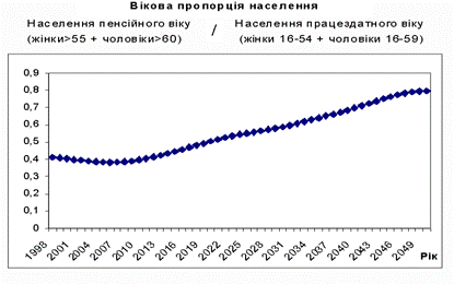 прогнозу структурного співвідношення кількості пенсіонерів та працездатного