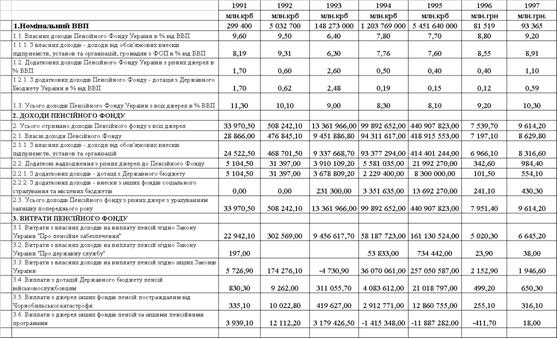 та витрат Пенсійного Фонду України у 1991 – 1997 роках