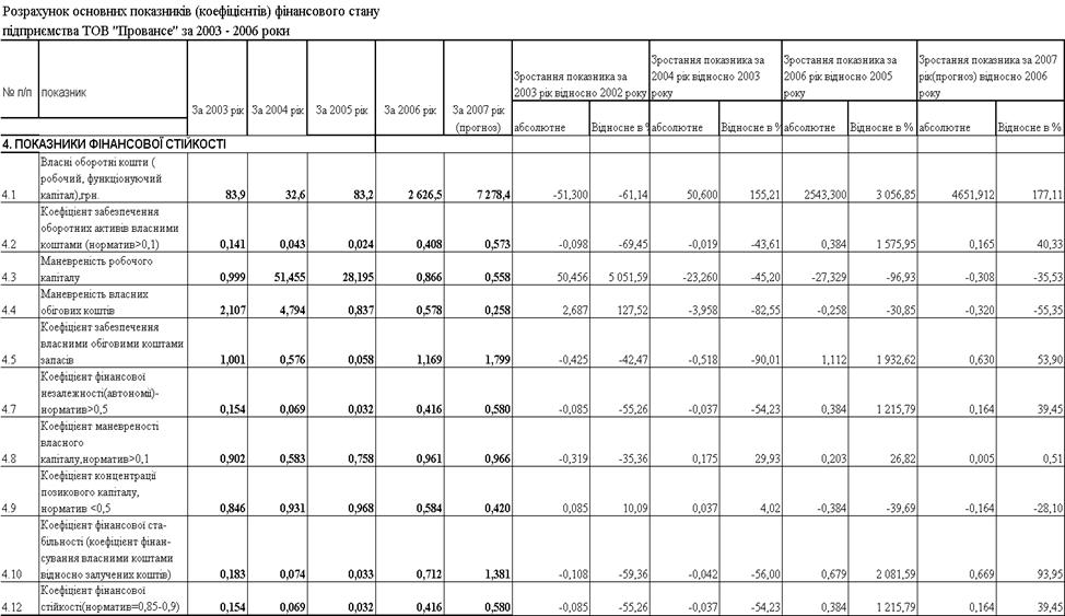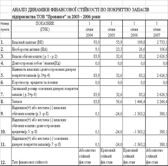 розрахунку абсолютних показників фінансової стійкості(коефіцієнту покриття