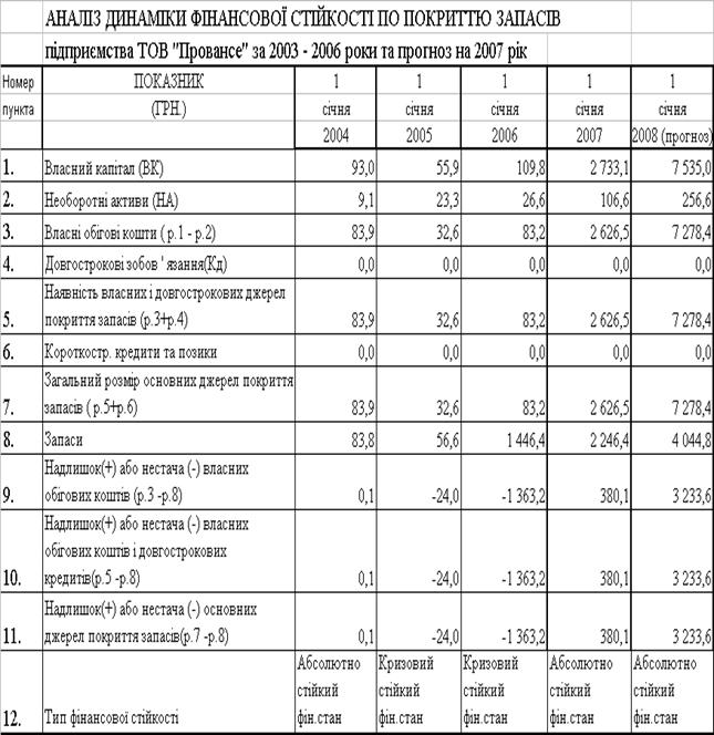 стійкість для забезпечення запасів (З) достатньо власних оборотних коштів;
