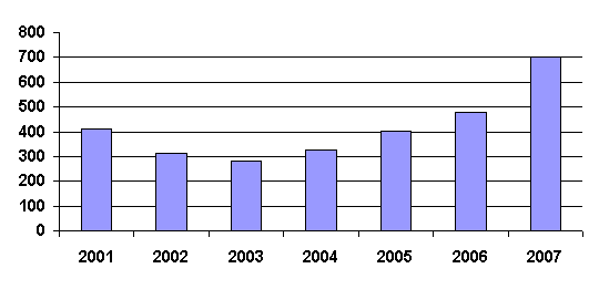 останні роки помітно скоротилася. Наприклад, в 2003 році вона рівнялася 30 %, а