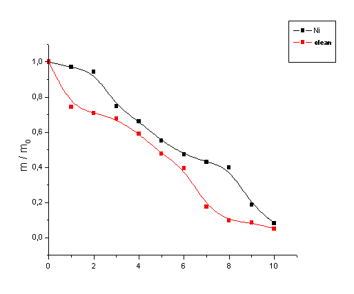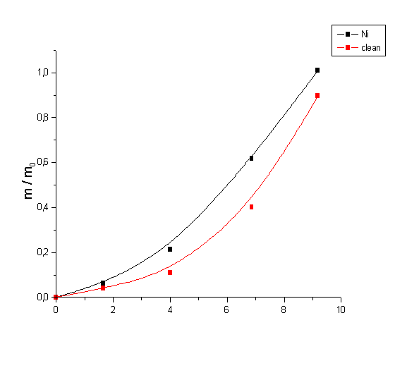 отношение m/m0 гидрогелей АА - АК - ПЭИ чистый и с «вшитым»