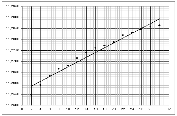 измерений пунктов 1.3-1.4 занесли в таблицу 1. По данной таблице построили