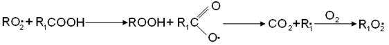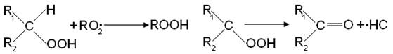 кислорода и превращается в перекисный радикал RO2•, который далее отрывает атом водорода от молекулы