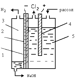 из них – электролиз с твёрдым асбестовым или полимерным катодом (диафрагменный