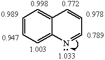 вплив гетероатома в молекулі хіноліну електронна густина зменшена у порівнянні