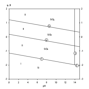 5) На основании постоенных диаграмм рН-потенциал системы Ni-Si-H2O