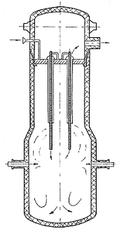 конвертированный газ поступает по центральной трубе шахтного реактора в верхнюю