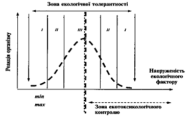 25%. Якщо зміни напруження екологічного фактора в зоні екотоксикологічного