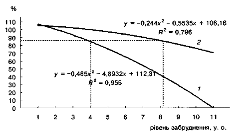 порівняно з фоном при збільшенні рівня забруднення.
