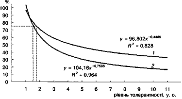 толерантності становив 1,4 у. о. (рис. 6).