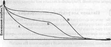 кіз. Крива В - близька до ідеальної кривої, так як бачимо, що смертність довгий