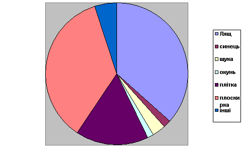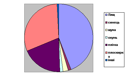 області таких видів риб лящ (36%), плоскирка (33 %) та плітки (18 %) у 2006 р.