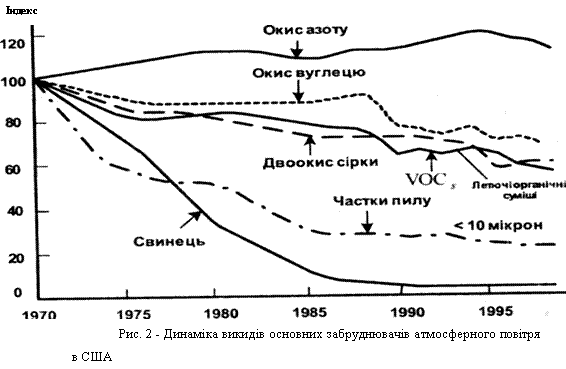 викиди шкідливих речовин в атмосферне повітря в 2000 р. порівняно з 1990 р. зменшилися на 9,64