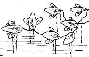 3-15 см. Цвіте VI-VII. В стоячих водоймах (в озерах) і в